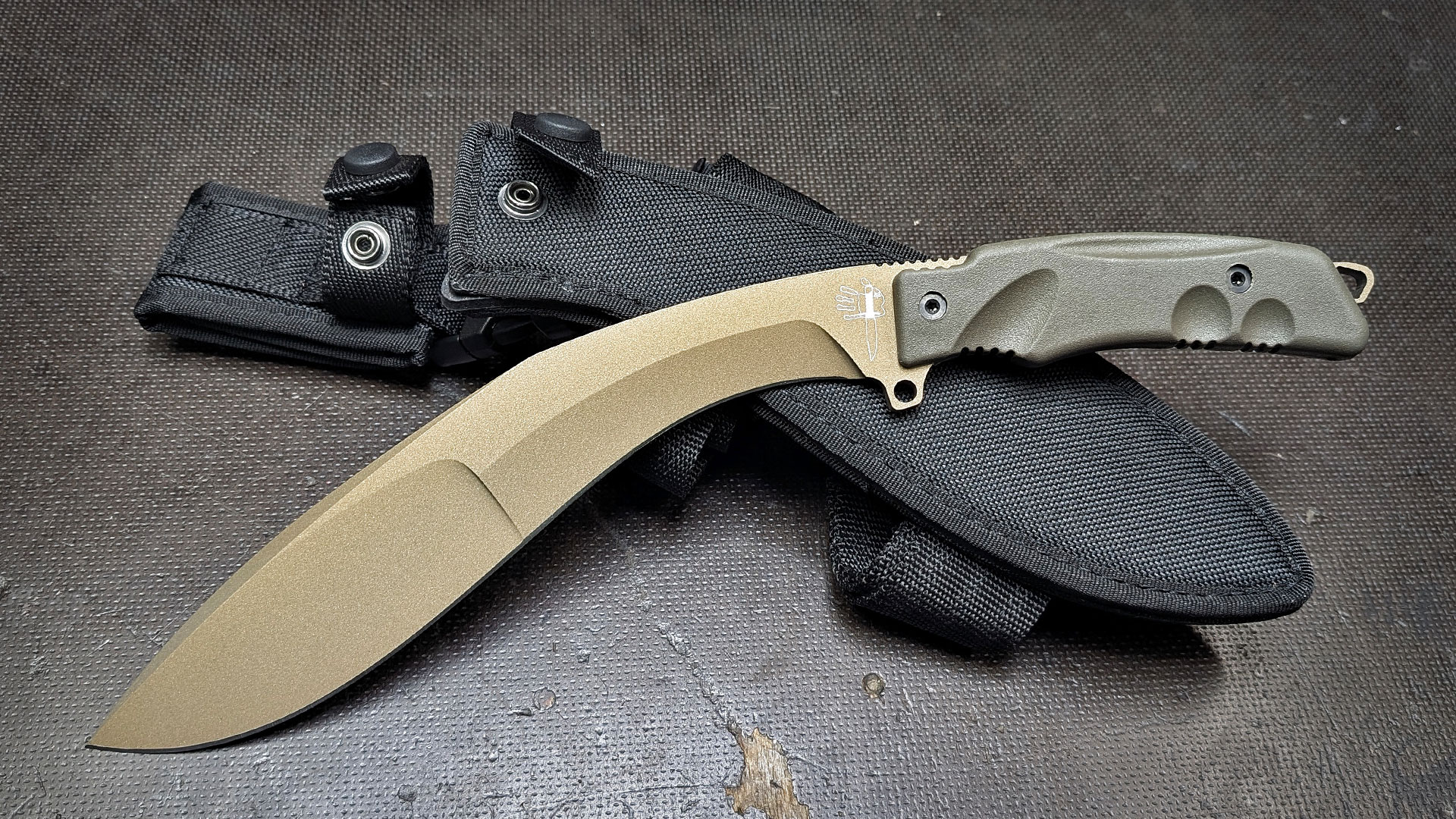 Das Extreme Tactical Kukri von FKMD ist ein Haumesser für härteste Beanspruchungen und extremen Einsatz. Die Klinge aus 6 mm starkem N690 Stahl ist, Kukri-typisch, stark nach vorne abgewinkelt und schlägt sich mühelos durchs Unterholz. Mit der 23,5 cm langen Klinge hat man genug Reichweite und Wucht um problemlos für längere Zeit auch anspruchsvollen Schneid- und Hackarbeiten gewappnet zu sein. Lieferung mit schwarzer Cordura Scheide.