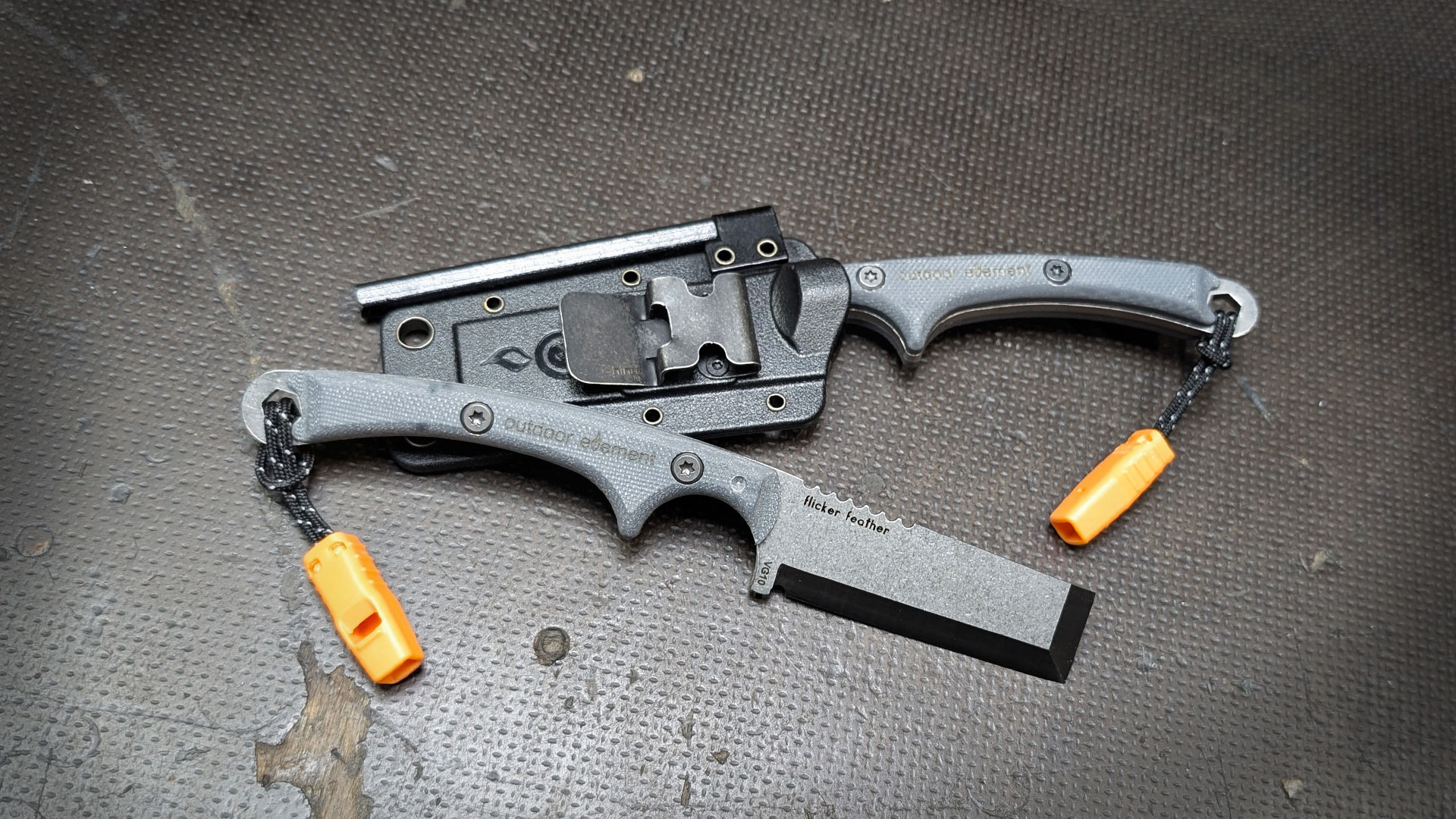 Das Flicker Feather Survival EDC Chisel Blade von Outdoor Element ist mehr als nur ein Messer mit Meißelschliff. Mit ihm können Sie Feuer entfachen und Hilfe signalisieren sowie gerade Schnitte ausführen, hacken, schlagen und Kerben schlagen.