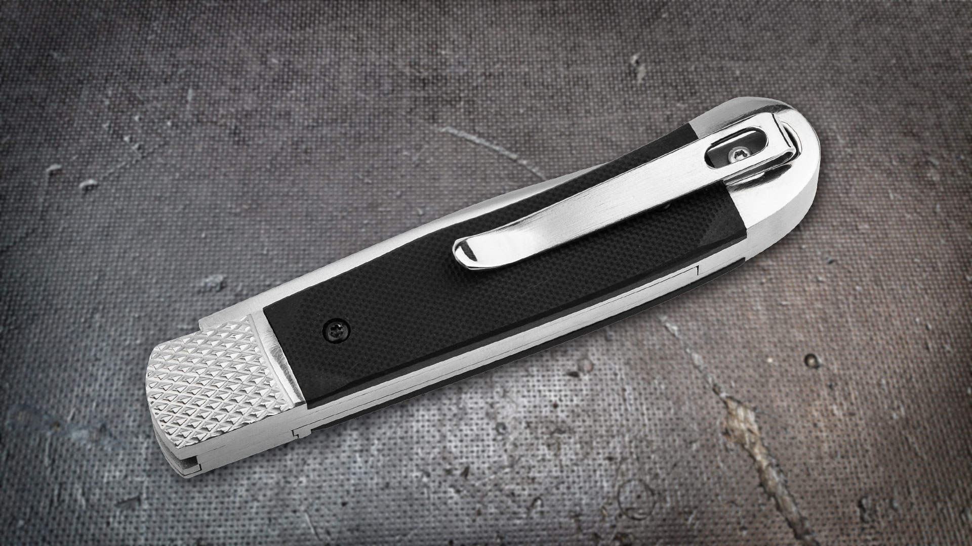 Harmonisch abgerundet wird die aufgeräumte Linienführung durch den Tip-Up Clip (r), der eine Deep-Carry-Trageweise erlaubt.
