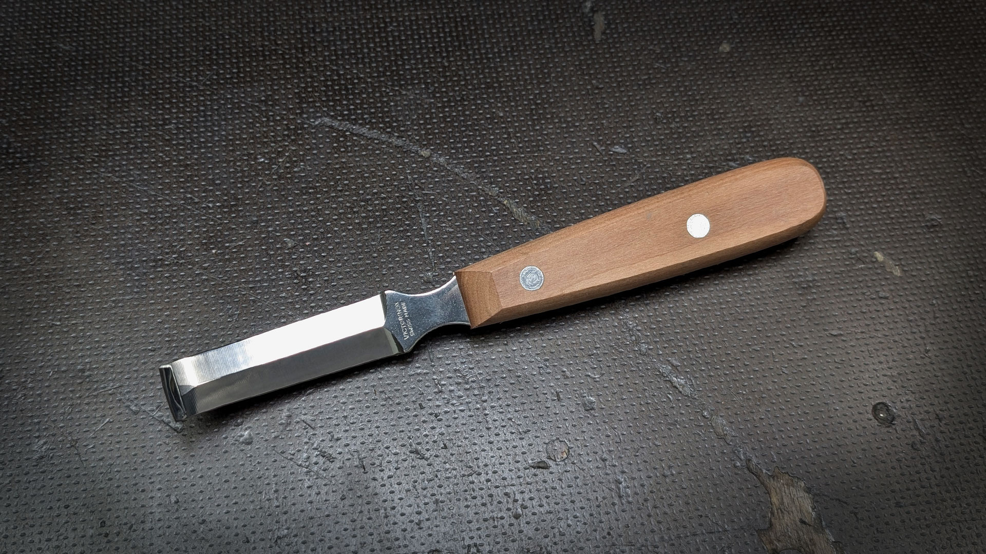 Gerader Holzgriff für beidseitiges, müheloses Arbeiten. Für kleinere Korrekturen am Pferdehuf perfekt geeignet.