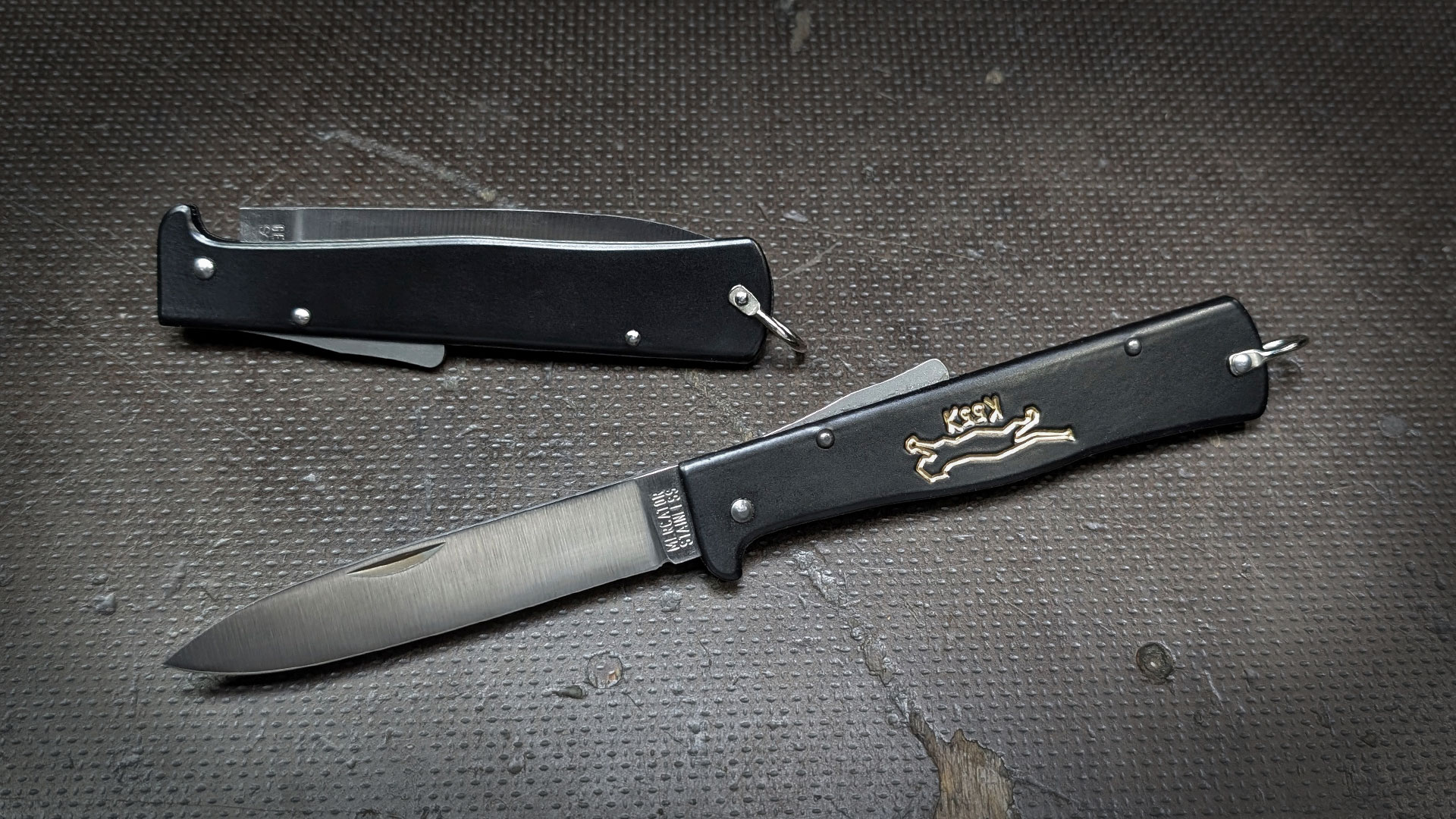 Dort wurde es unter dem Namen „Black Cat Knife“ berühmt und ist dort heute noch Kult. Die Bezeichnung K55K bedeutet „K“ für Kaufmann (dem ursprünglichen Hersteller), „55“ für Hochstraße 55 (die ursprüngliche Firmenadresse) und „K“ für das Symbol Katze. Die Prägung wird unter der Presse eingestanzt und nach dem Pulverbeschichten wie früher von Hand ausgemalt