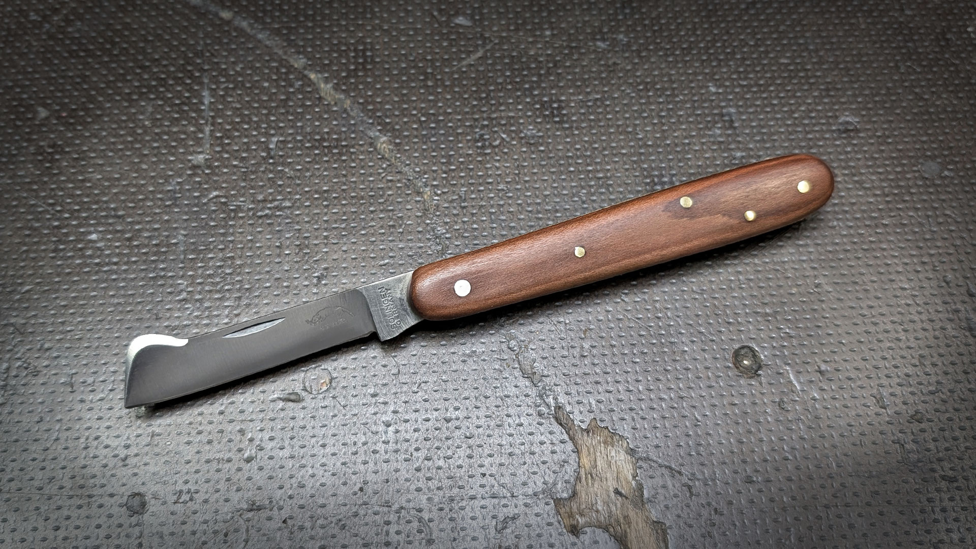 Klingenmaterial: Kohlenstoffstahl 1.2067 Griffmaterial: Sapeli Holz