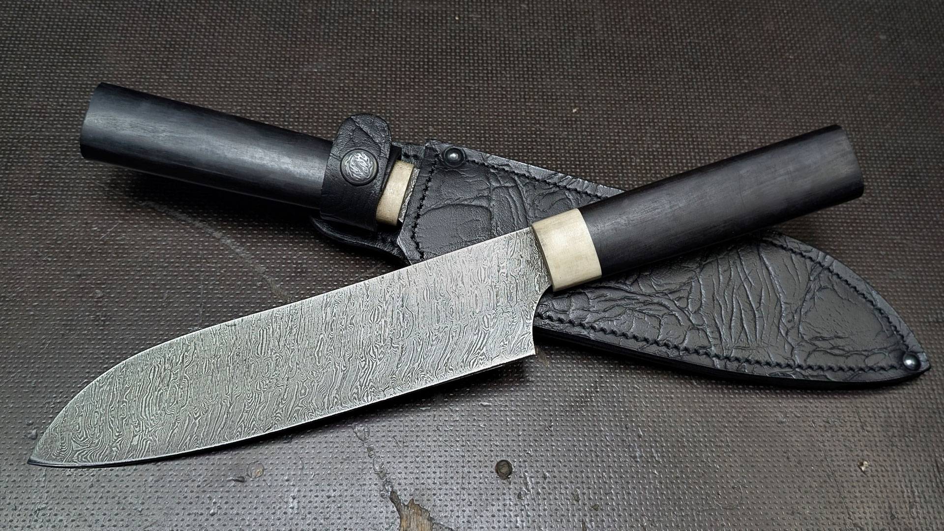 Santoku Damast | Ebenholz/Knochen