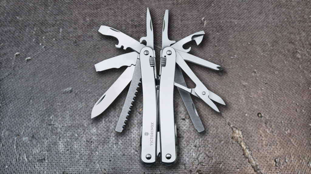 • Multi-Tool mit 24 Funktionen, hergestellt in der Schweiz