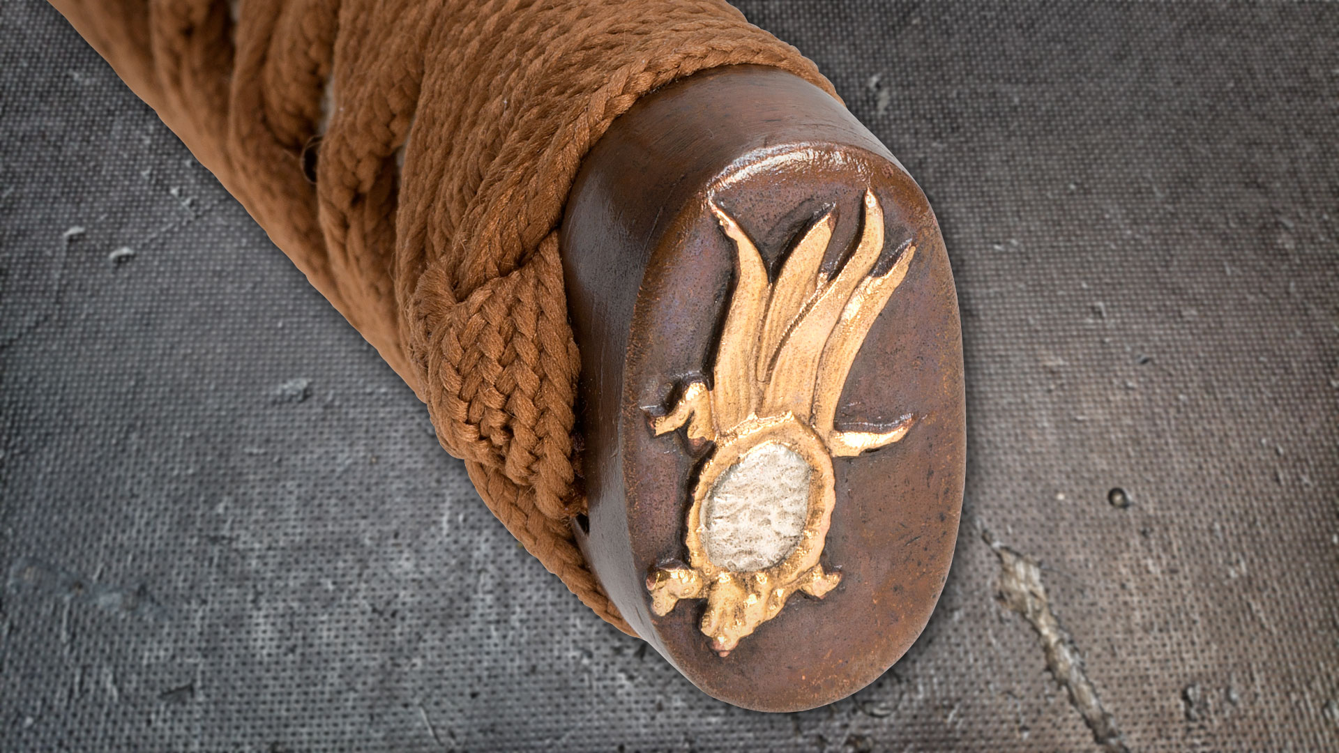 – Griffwicklung aus brauner Baumwolle im klassischen Hineri-Maki-Stil.